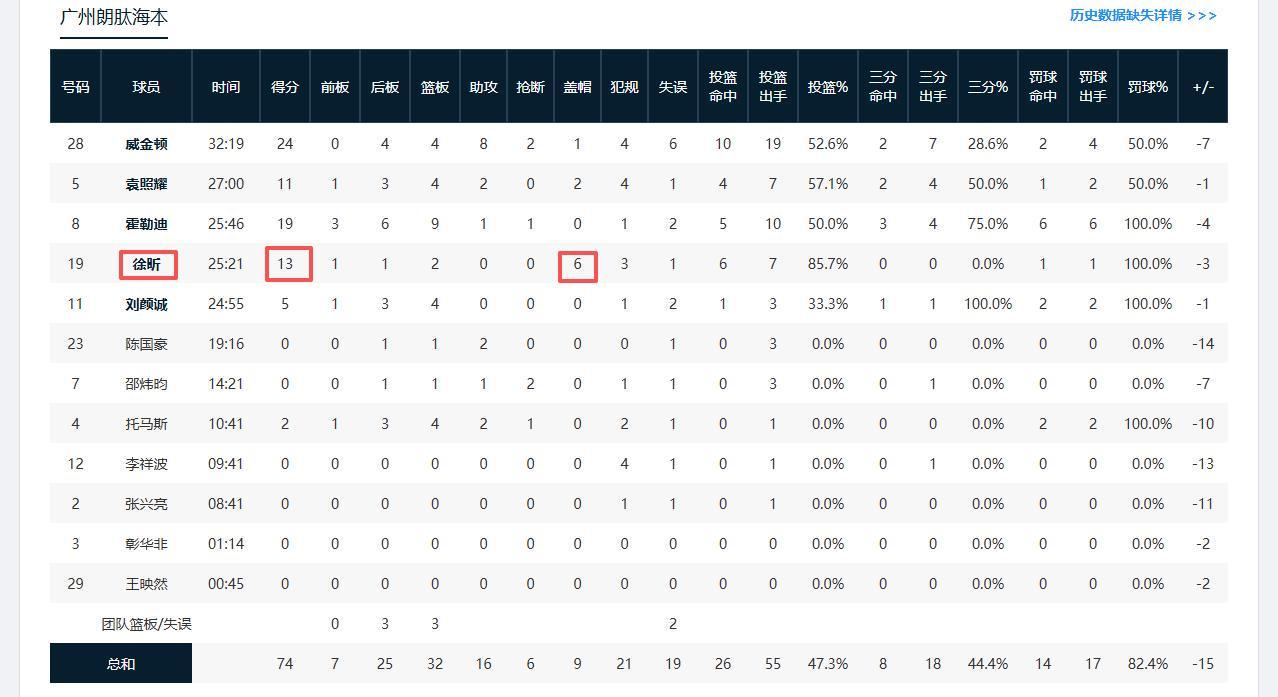 昨晚CBA只有两场比赛,浙江队89比74击败广州队,天津队则大赢福建队30分。虽然广州队输了,但是有些队员还是值得点赞。